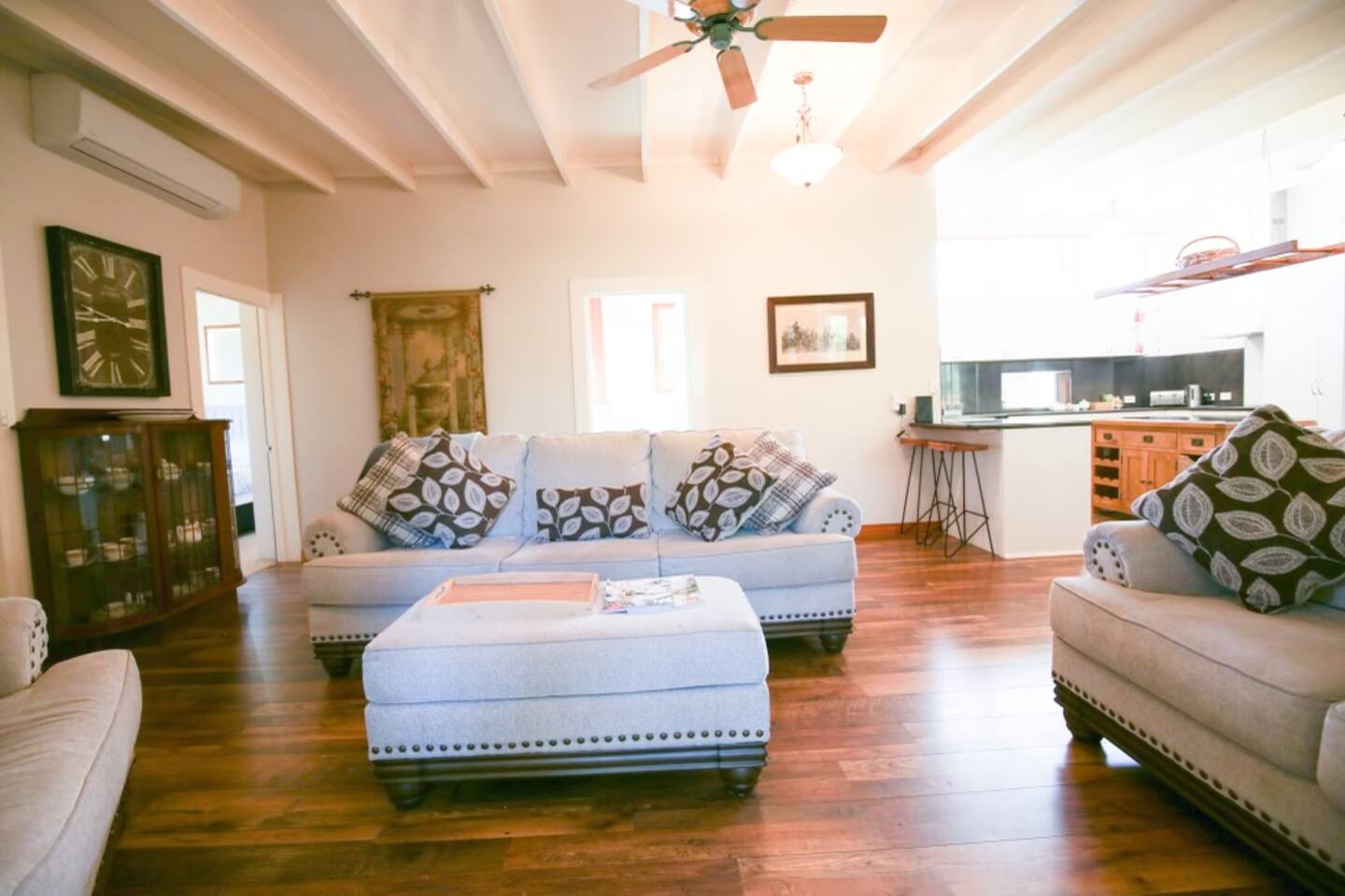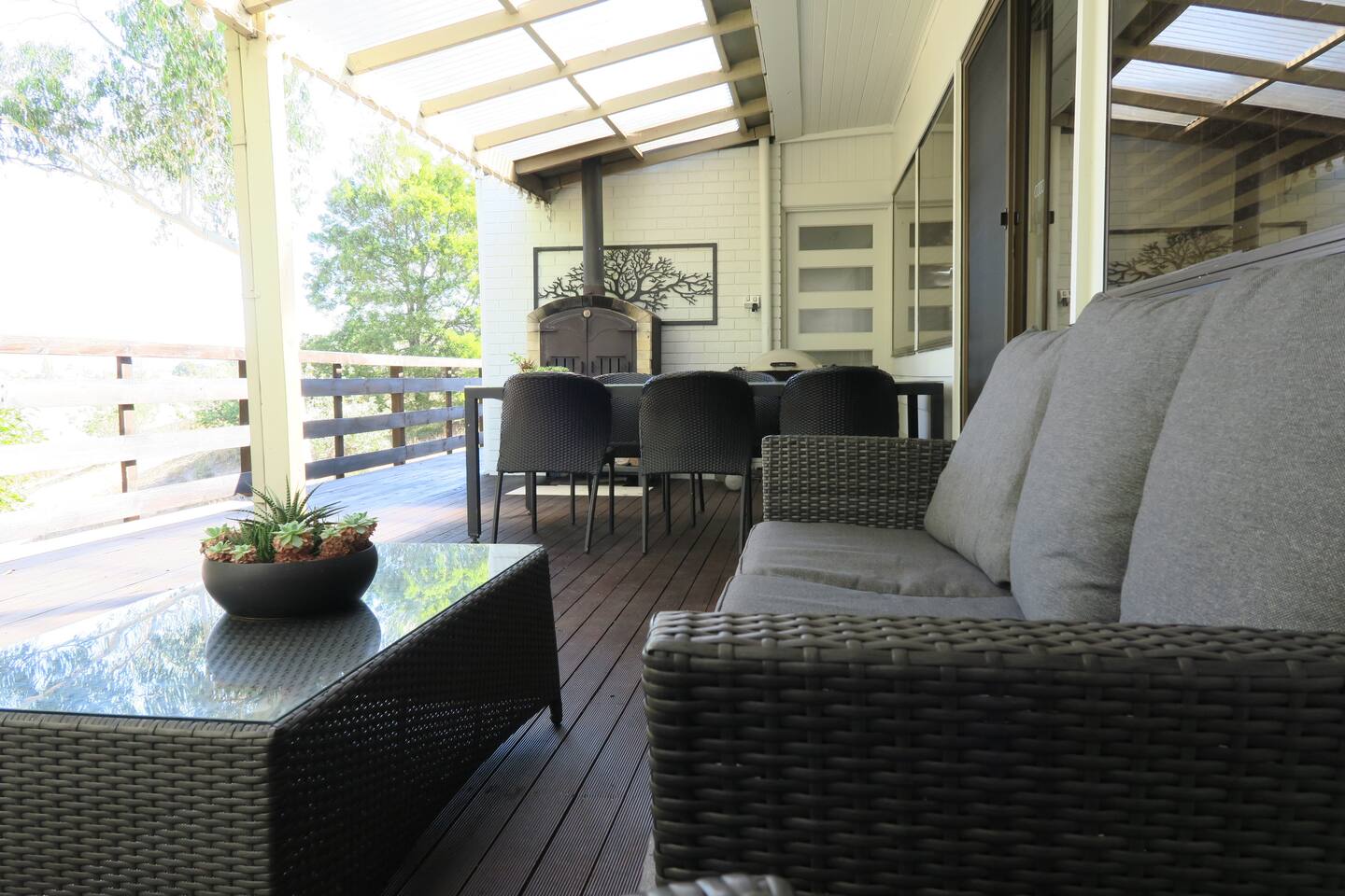 Bridgecroft House Located in the heart of the Richmond village, Bridgecroft is a pleasant 10 minute stroll to the town centre. Our family home is situated on almost 2 acres and offers privacy with a quiet country location. With 2 spacious lounges, free wi-fi and Netflix, there is room even for the largest family. We have 4 bedrooms - 3 with queen size beds and 1 with two king singles. Our bathrooms have a separate shower and (one) bath should you need it for small children. Bridgecroft House has a full kitchen with dishwasher, induction stove and electric oven. You are welcome to use food from our pantry during your stay. Our outdoor entertaining area has a gas BBQ and wood fired pizza oven. A separate area has a hot tub heated all year round to 39 degrees. You are welcome to use at no additional charge. Outside we also have a large area with permanent seating and a steel fire pit recycled from a mine on the west coast of Tasmania. There is usually plenty of wood and sticks to keep it going all night or you can bring your own. With quality accommodation for up to eight people, this is the ideal location to base yourself to explore southern Tasmania. We are happy to extend your visit beyond the advertised days, just drop us an email to arrange this. Upgrades and products available upon arrived can be organised.